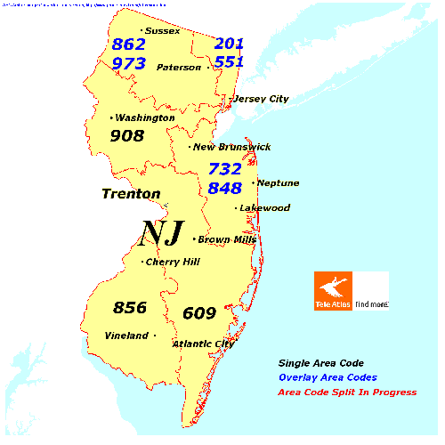 New Jersey Area Codes Map List And Phone Lookup